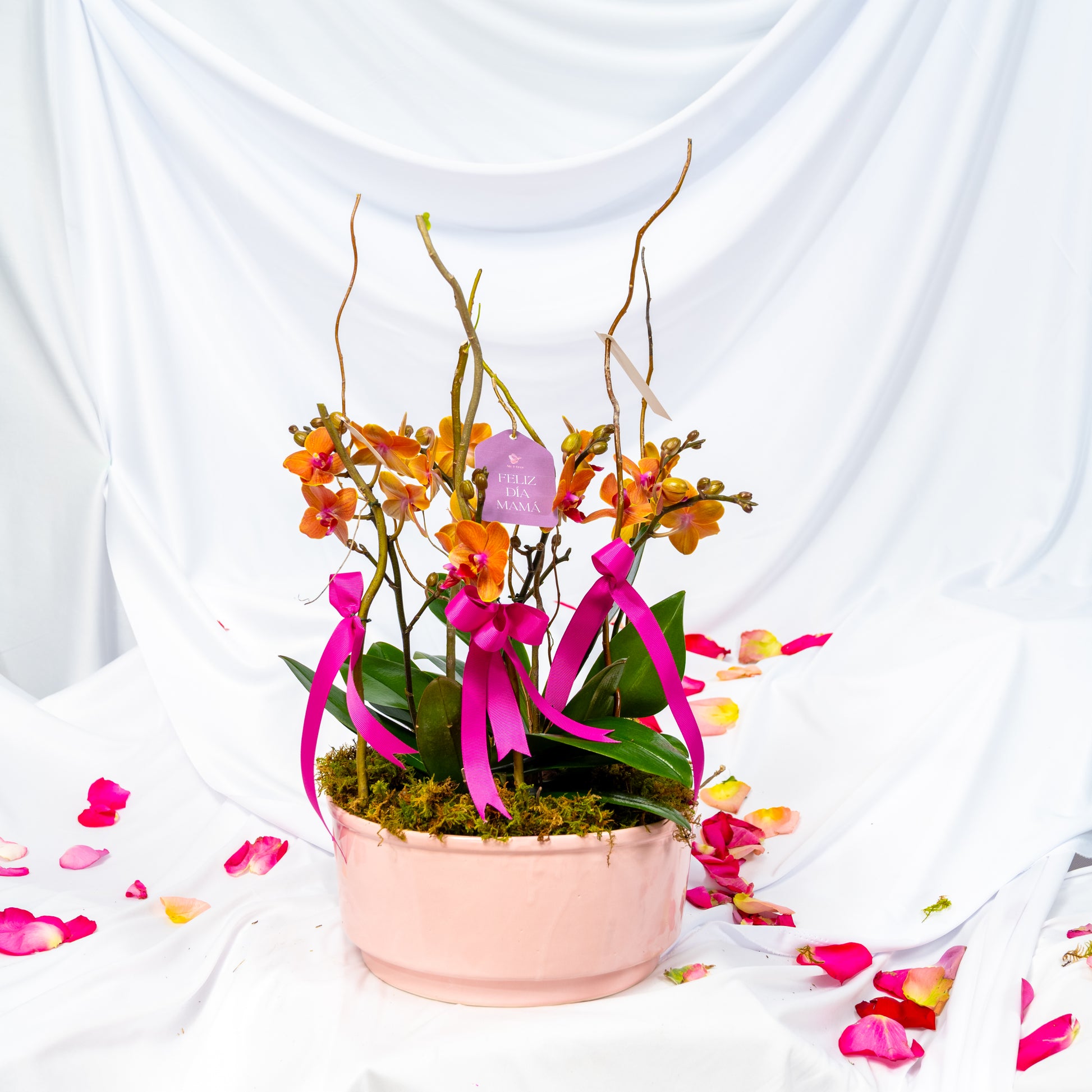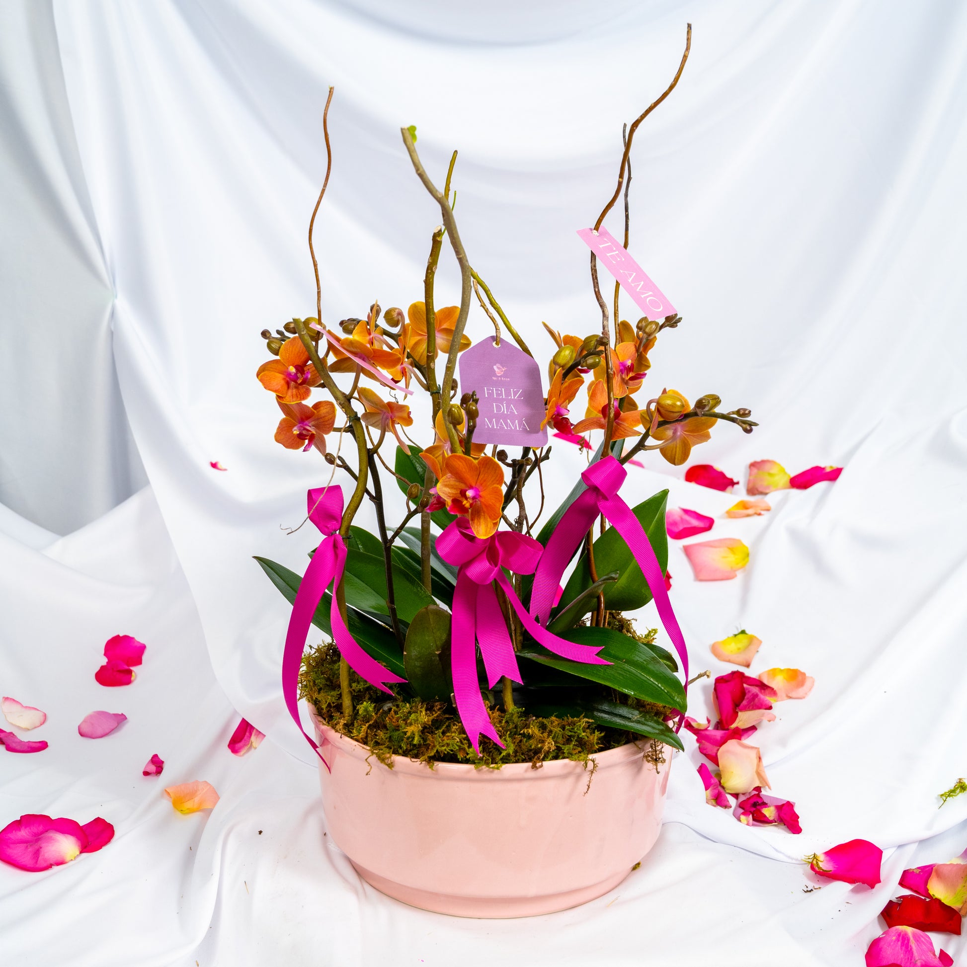 Un arreglo delicado que destaca por su elegancia natural y su estilo sutil. Dulcinea reúne 2 mini orquídeas cuidadosamente presentadas sobre una base decorada con musgo, creando un diseño armonioso y lleno de frescura. Incluye dedicatorias estilo etiquetas con lindas frases y convertir este detalle en un regalo único y lleno de intención.